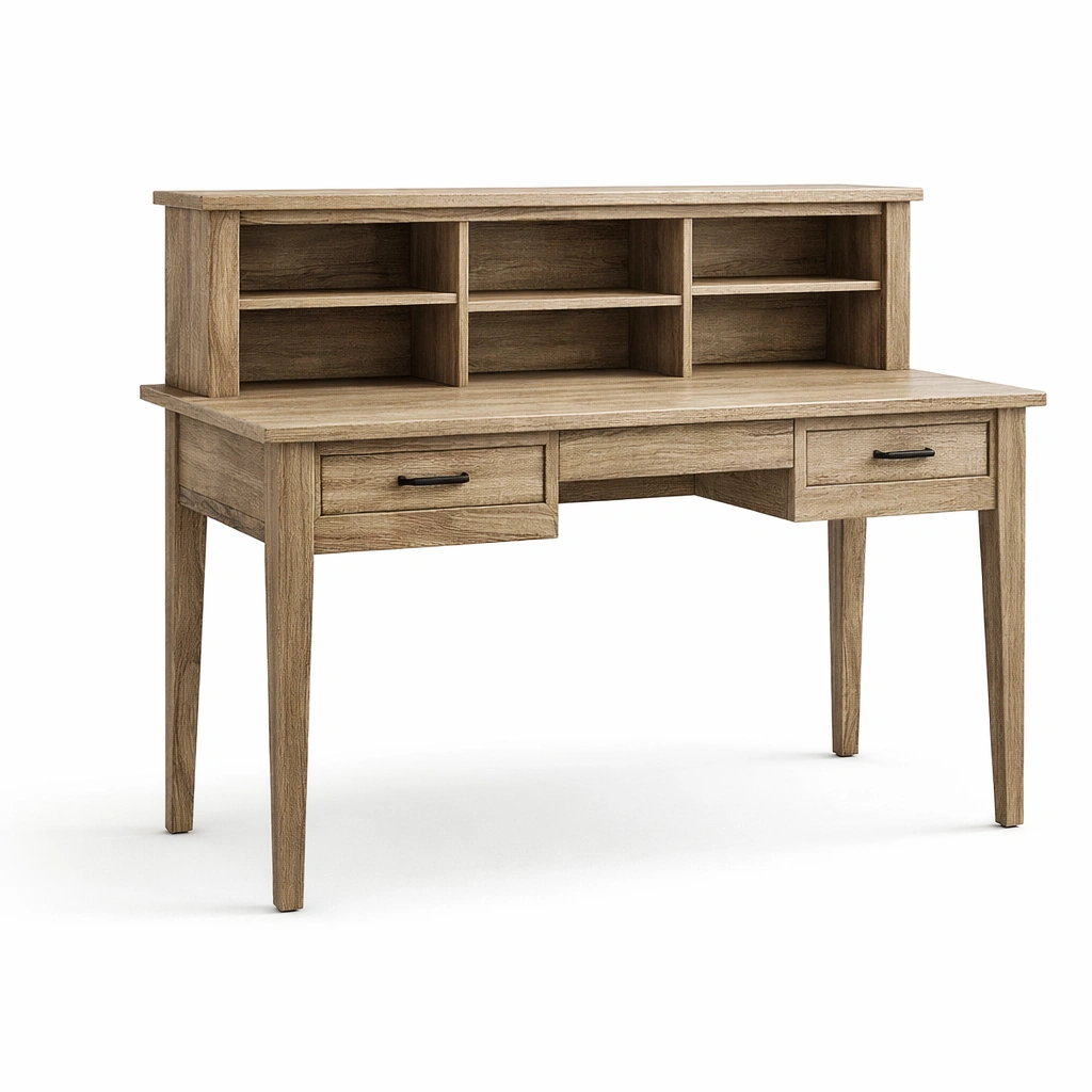 Características: Incluye 6 compartimentos de almacenamiento y 2 cajones con tiradores metálicos.